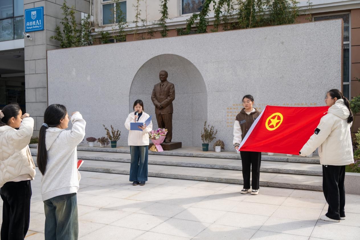 在接下来的环节中,团员代表为新发展团员佩戴团徽,随后,团委老师向新发展团员颁发《中国共产主义青年团章程》,在2022级团总支马润言同学带领全体新发展团员宣誓。之后,新发展团员代表、生工2401班翁煊同学进行发言,展现出生工团员积极向上的精神面貌。在全体师生合唱《中国共产主义青年团团歌》的歌声中,本次入团仪式圆满落幕。
