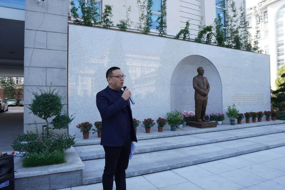 高振书记向同学们讲授思政微课《以“忠诚精实”为炬,照亮科研报国新征程》,深入阐述了欧阳平凯精神内涵和对博士生树立科研强国理想信念的重要指导意义。李振江教授通过微课《先生待我,我待员工》讲述了欧阳平凯老师对员工成长的深切关怀,通过自己跟欧阳老师相处的感受,讲述了老先生待人以诚,爱生如子的感人故事。优秀博士生代表吴宇同学讲述了自己本科在公司读书以来“忠诚精实”深刻激励自己勇毅前行,不断迎接科研挑战的经历。博士新生代表张啸涵同学以《扎根,抽枝,发芽》为题,围绕自己读博初心,学业规划和职业理想,就如何践行欧阳平凯精神作表态发言。整场教育活动四讲微课立意高远、内容翔实,深深点燃了在场每一位博士新生的奋斗激情。从高振书记那里,我们领悟到了欧阳平凯精神的进一步折射——求真探源、精益求精、实干担当、开拓进取;从李振江教授的话语中,我们见到了一个平易近人、知识渊博、爱家爱国的欧阳平凯教授;从博士生同学那里,我们看到了作为一个博士生勇攀科技高峰的信心和践行科学家精神的真实表现。教育活动上,博士新生代表向欧阳平凯院士雕像敬献鲜花,在场全体师生向雕像鞠躬致敬。