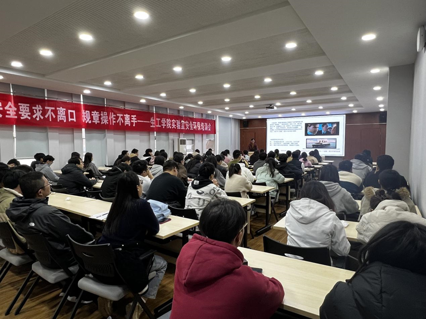 在培训中,张亚兵老师强调,设备安全是实验室安全的核心,特别是特种设备(如高压灭菌锅等)、气瓶等风险高,操作须严守规程:事前检查确认状态,事中全程值守、遵章操作,事后及时维护清理。生工学科群研究生开展课题研究避免不了使用各种化学药品和生物制品。张老师强调化学药品安全是实验室安全的重中之重。张老师向同学详细讲解了其分类、储存、取用及废弃规范,并重点结合案例,强调了易挥发、腐蚀、剧毒等特殊药品的操作注意与应急措施。并从《中华人民共和国生物安全法》制定背景,生物安全等级、样本处理及个人防护等方面讲解了生物相关实验室的管理规范。