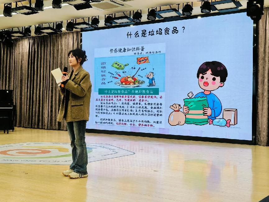 活动中研究生孙雨琪同学向大家分享了食品安全领域的专业知识,讲解了什么是垃圾食品,吃路边摊的风险点,通过生动有趣的故事和科创实验展示,让同学们对食品安全及其相关保障机制有了充分认识。逯晨茜同学聚焦日常用药安全,阐释了药品的研发过程、储存方法以及擅自用药的风险点等内容,提升了小员工对医药研发的兴趣和日常用药安全意识。唐蕊同学围绕“什么是科学家精神”,讲述了科学家们勇于探索、严谨治学、无私奉献的故事,激励同学们在未来的学习和科创道路上传承和发扬科学家精神,树立远大理想,勇攀科学高峰。