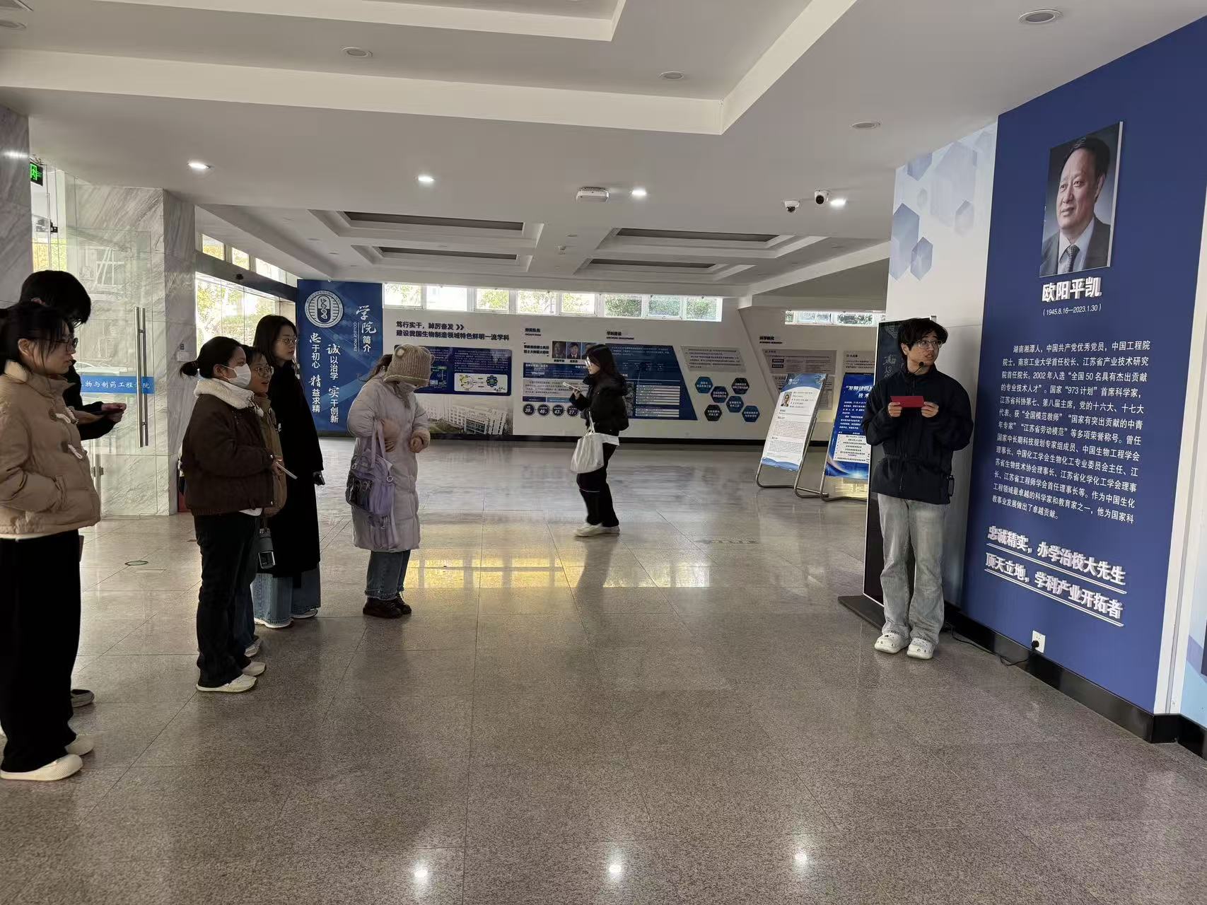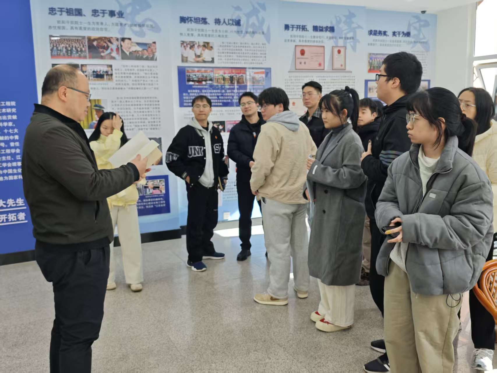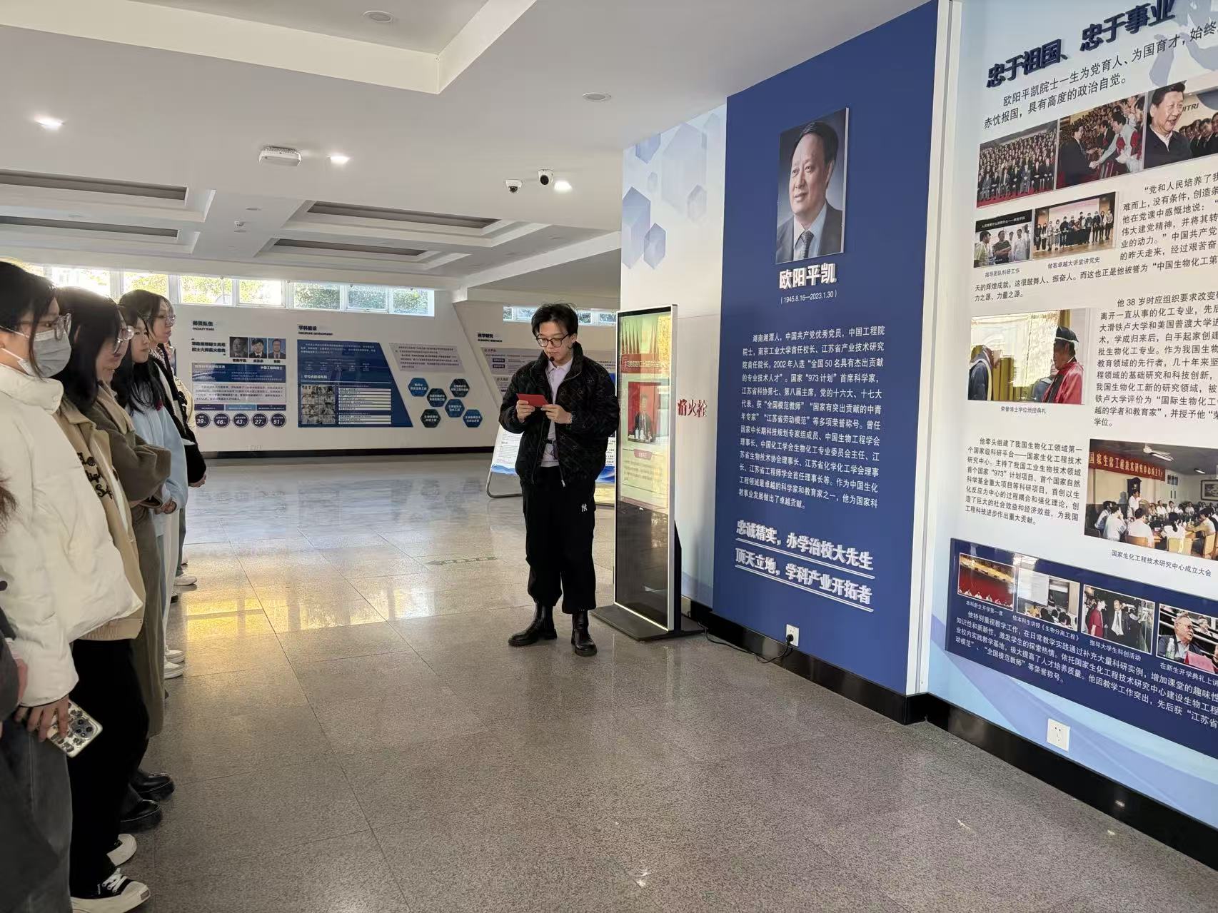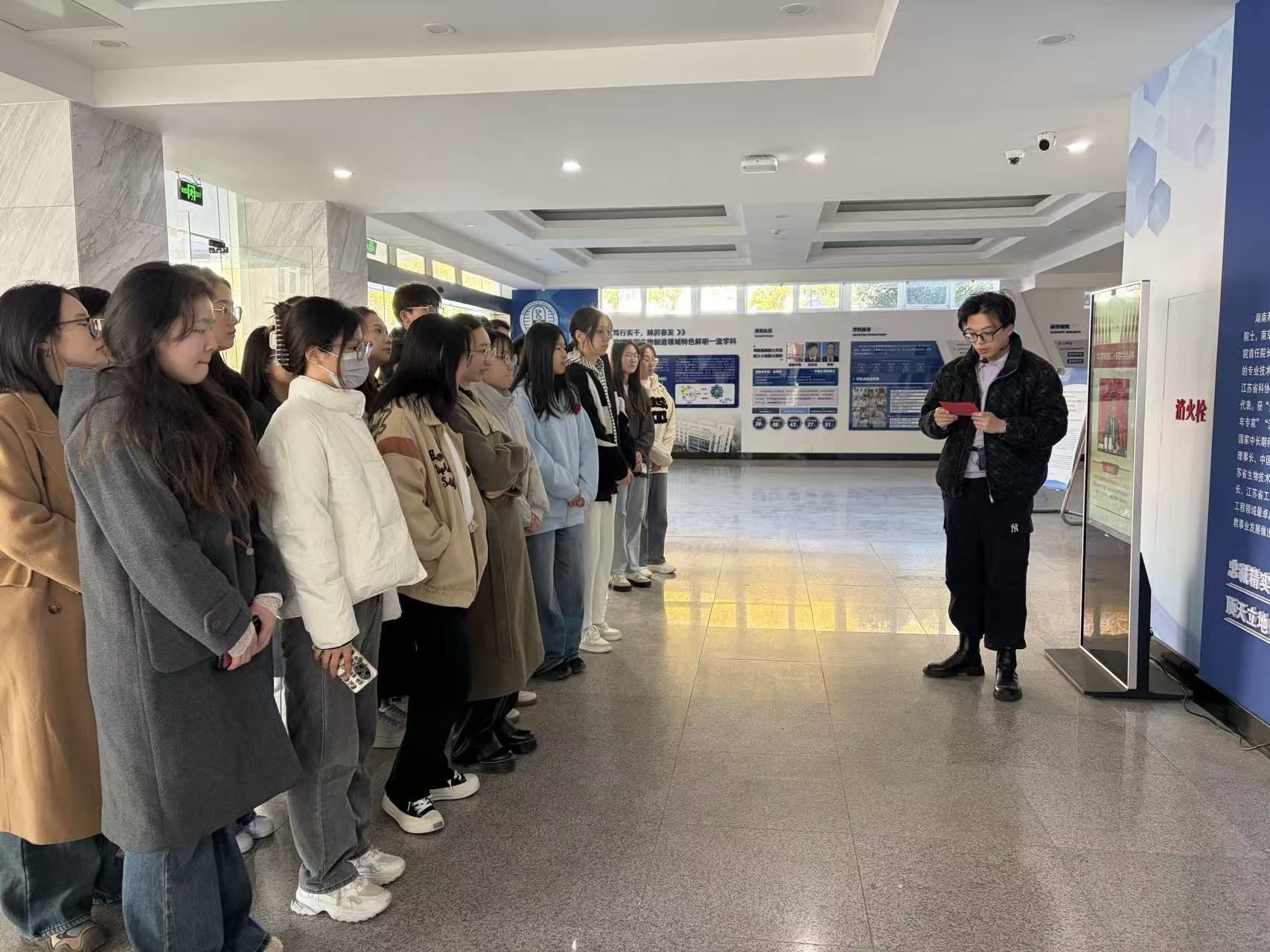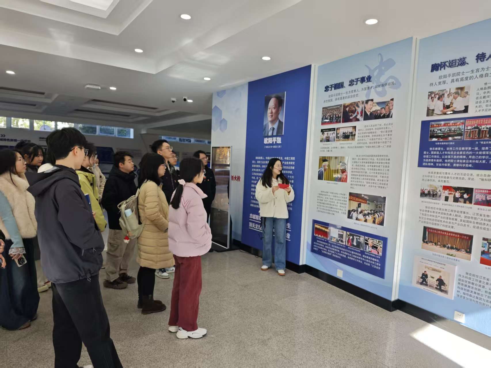 由生工学科群研究生组成的讲解团成员以生动语言串联先生的学术生涯与创业故事:从开拓生物工程领域的关键突破,到扎根教育一线、关爱青年学子的暖心细节,让研究生们沉浸式感受先生“高瞻远瞩、勇立潮头”的开拓者、“顶天立地、求真务实”的实干精神和“忠诚精实、品格高洁”崇高人格。