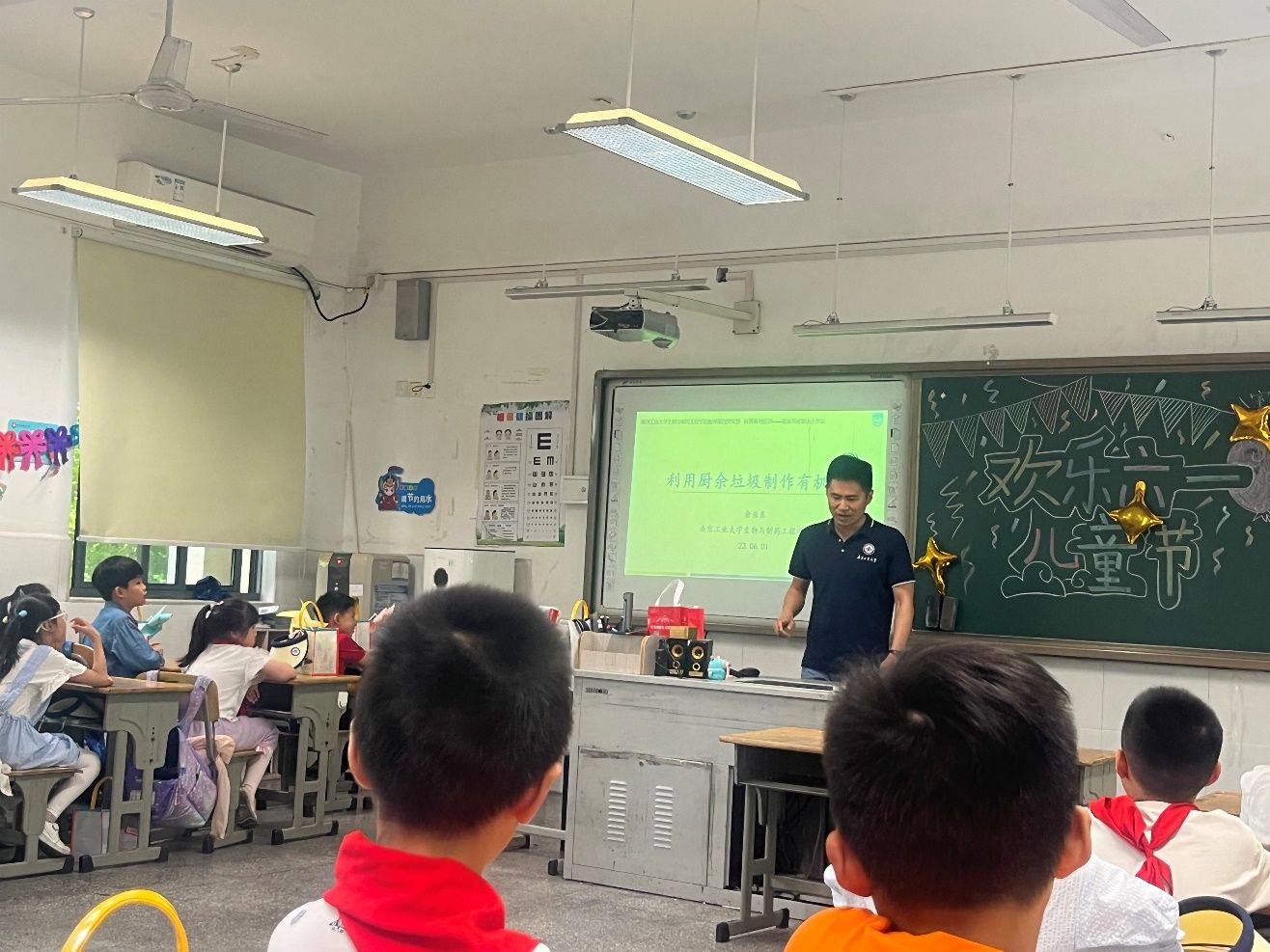为推动主题教育走深走实,深入开展“三个一线”行动,鼓励党员师生在奉献社会中发挥作用,6月1日在第七十三个国际儿童节到来之际,生工公司党委组织教师第四党支部俞亚东副教授赴南京市将军山小学开展主题为“利用厨余垃圾制作有机肥”的科普教育活动。
