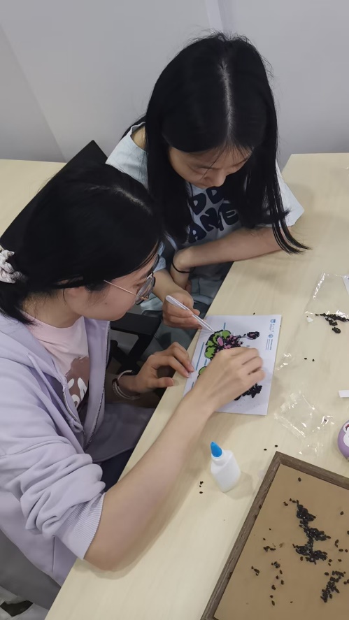 活动现场,校关工委副主任缪昌美,公司党委书记高振,党委副书记、纪委书记徐元龙带领各支部书记、纪检委员和师生党员代表,以镊子为画笔,以米粒为“颜料”,将廉洁文化倾注于方寸画板之上。在师生们专心致志的努力下,一颗颗小小的米粒被胶水固定在字画轮廓内,并用镊子不断修正确保不“越线”,寓意严守纪律底线;红黄米粒巧妙拼贴出华表的形象,黑色米粒勾勒 "清正廉洁" 的醒目字样,生动展现了我们党始终坚守的清正廉洁的政治本色;粉色米粒铺排成亭亭玉立的莲花,用莲花 "出淤泥而不染" 的高洁形象来诠释廉洁寓意,传递出崇廉尚洁的价值内涵。师生们在亲手创作的过程中,不仅深切感受到了传统工艺的独特魅力和匠心之美,还潜移默化地接受了廉洁文化的熏陶,沉浸式体验到工匠精神的魅力。