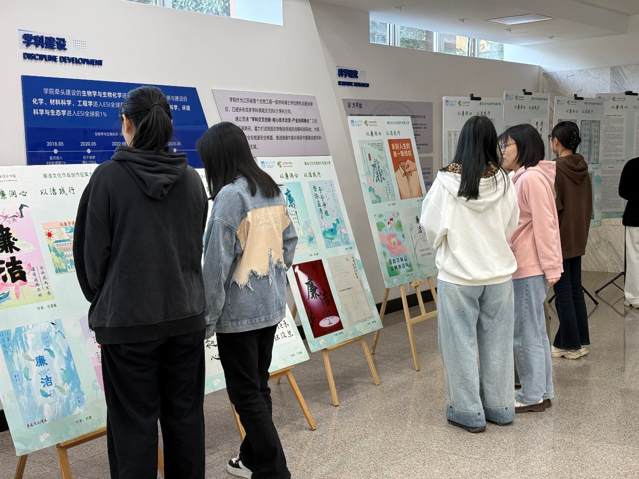 展览现场,一幅幅主题鲜明、寓意深远的书画作品,一件件构思精巧、鞭辟入里的公益海报,吸引了师生的目光。大家或驻足细览,或低声交流,在艺术的熏陶中深刻感悟廉洁文化的内涵与力量。作品所传递的崇廉尚洁、正气浩然的价值理念,如春风化雨般浸润着每一位同志的心田。