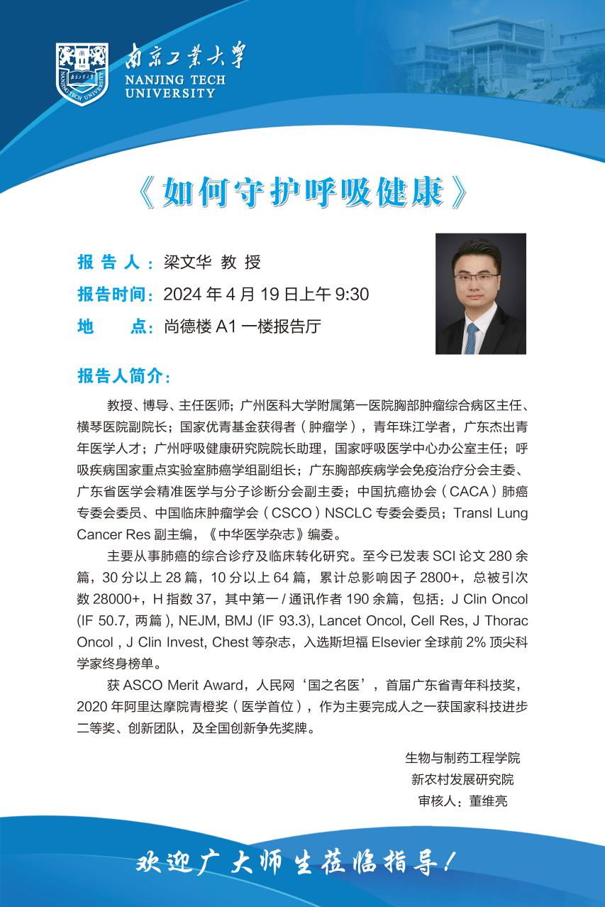 为了提高广大教师对呼吸健康重要性的认识,普及呼吸健康知识,4月19日,best365官网工会邀请广州医科大学附属第一医院梁文华教授,举办了主题为“如何守护呼吸健康”的科普讲座。讲座由best365官网工会主席董维亮主持。