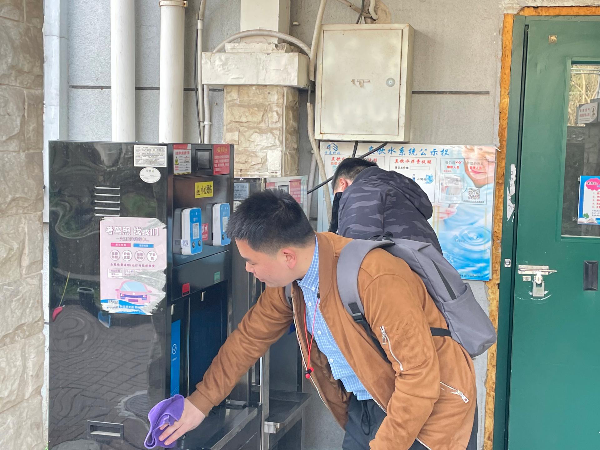 上午九点,同学们兵分四路,分别在亚青村、象山苑、东苑和南苑员工公寓楼下集合。在员工公寓服务中心管理人员的支持和帮助下,同学们深入宿舍区,开展了清理小广告、擦拭饮水机、清除卫生死角等活动。经过同学们半天的志愿服务活动,员工公寓环境明显改善。