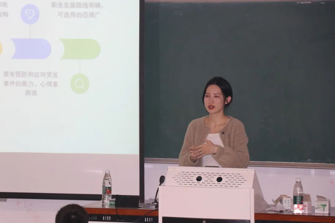 后范子豪向同学们分享了自己作为医疗信息沟通专员的心得,从考研还是毕业这个话题切入,向同学们分享了自己选择毕业工作以及选择销售行业的心路历程,范子豪强调选择工作要从自身出发,让自身的特长与职业相契合,如此才能从工作中获得成就感。接着其介绍了作为医疗信息沟通员的工作流程以及行业现状和前景,向同学们分析了其工作的优缺点。