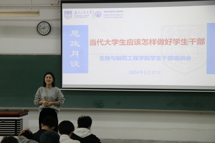 贺老师首先让员工干部回顾竞选初心,其次要求员工干部明确自己的职责,以更高的要求和规范去约束自己,发挥员工干部的优良作风和特色,做讲奉献讲团结讲纪律的员工干部。宋老师则是以员工干部日常事务举例,以如何不做“躺平”的员工干部展开交流分享,引导员工干部要做好自己的事并帮好同学们的忙。本次培训会还邀请制药2204的学习委员袁静怡同学分享班委工作经验。