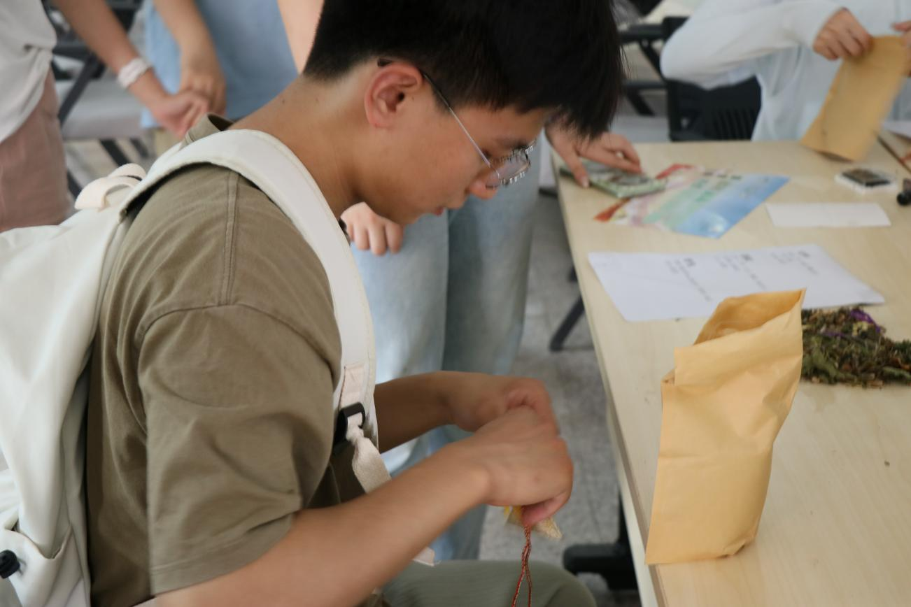 活动期间,参与者们积极参与了“草本套圈”、“药海导航(药物与疗效连连看)”、“水火不容(辨识相克药品)”等游戏,这些游戏不仅增加了活动的趣味性,也让大家在游戏中学习到了医药知识。此外,参与者还有机会自己动手制作香囊,这一环节深受大家喜爱,让每个人都能亲身体验到中医药文化的魅力。