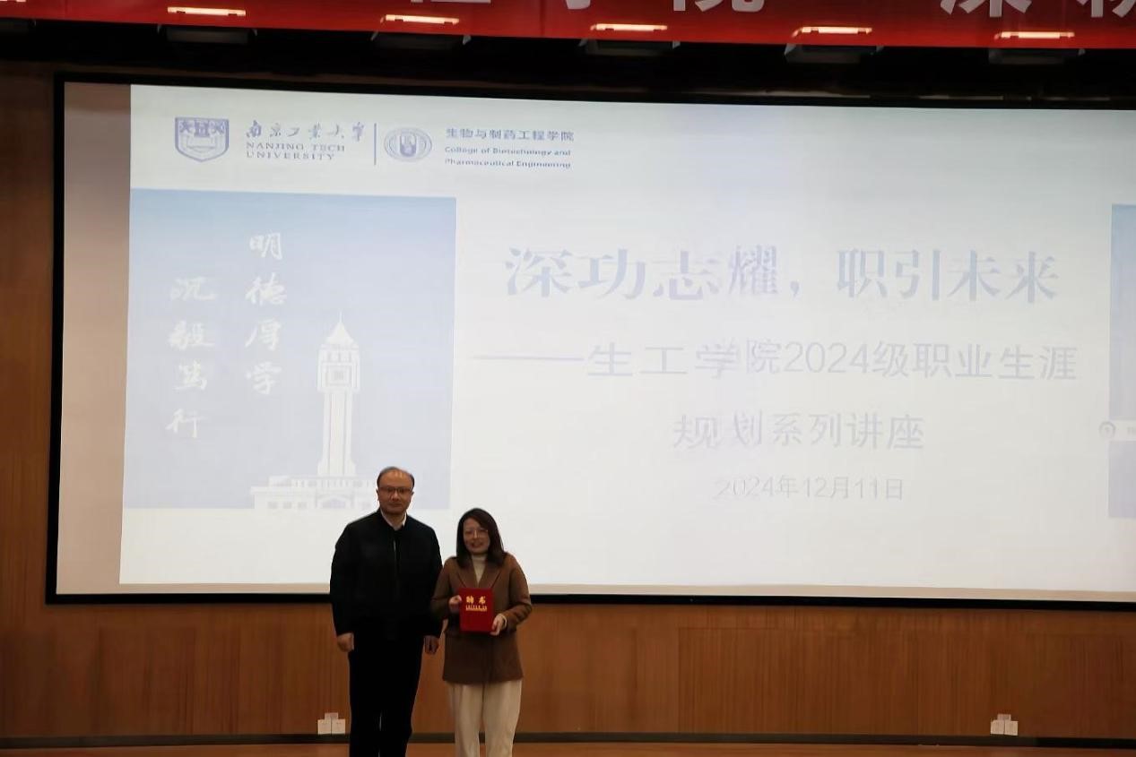 芳华待灼,履践致远。为引导best365官网2024级本研新生深入了解专业未来就业方向,绘制更加美好的生涯规划蓝图,12月11日下午,公司在笃学报告厅举办2024级职业生涯规划报告会。本次报告会邀请到江苏凯基生物技术股份有限公司的人力资源部经理、一级人力资源管理师、高级人力资源管理师(副高)蒋春云主讲。员工工作办公室主任朱皓主持,公司党委副书记、纪委书记徐元龙,生工学科群2024级本研新生参加。