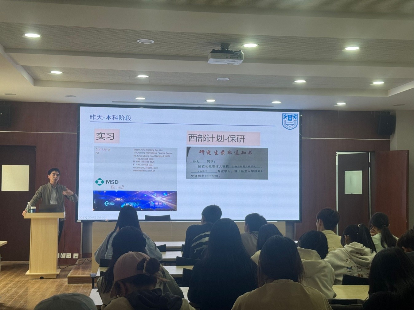 近日,一场别开生面的“青椒讲堂”在生工楼报告厅成功举办,制药2401班全体同学齐聚一堂,共同聆听老师们的人生经历。同时也为大一同学们的迷茫时光注入了一剂“强心针”。