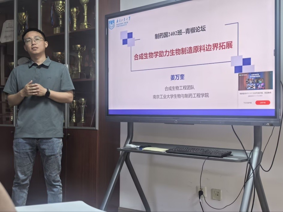 为深化专业认知、激发创新思维,5月13日,制药工程国2402班在班主任姜万奎老师带领下,于生工楼开展"青椒微讲堂"主题实践活动。通过实验室实地探访与理论课程深度融合的创新模式,生工学子在沉浸式体验中触摸生物制造的时代脉搏。