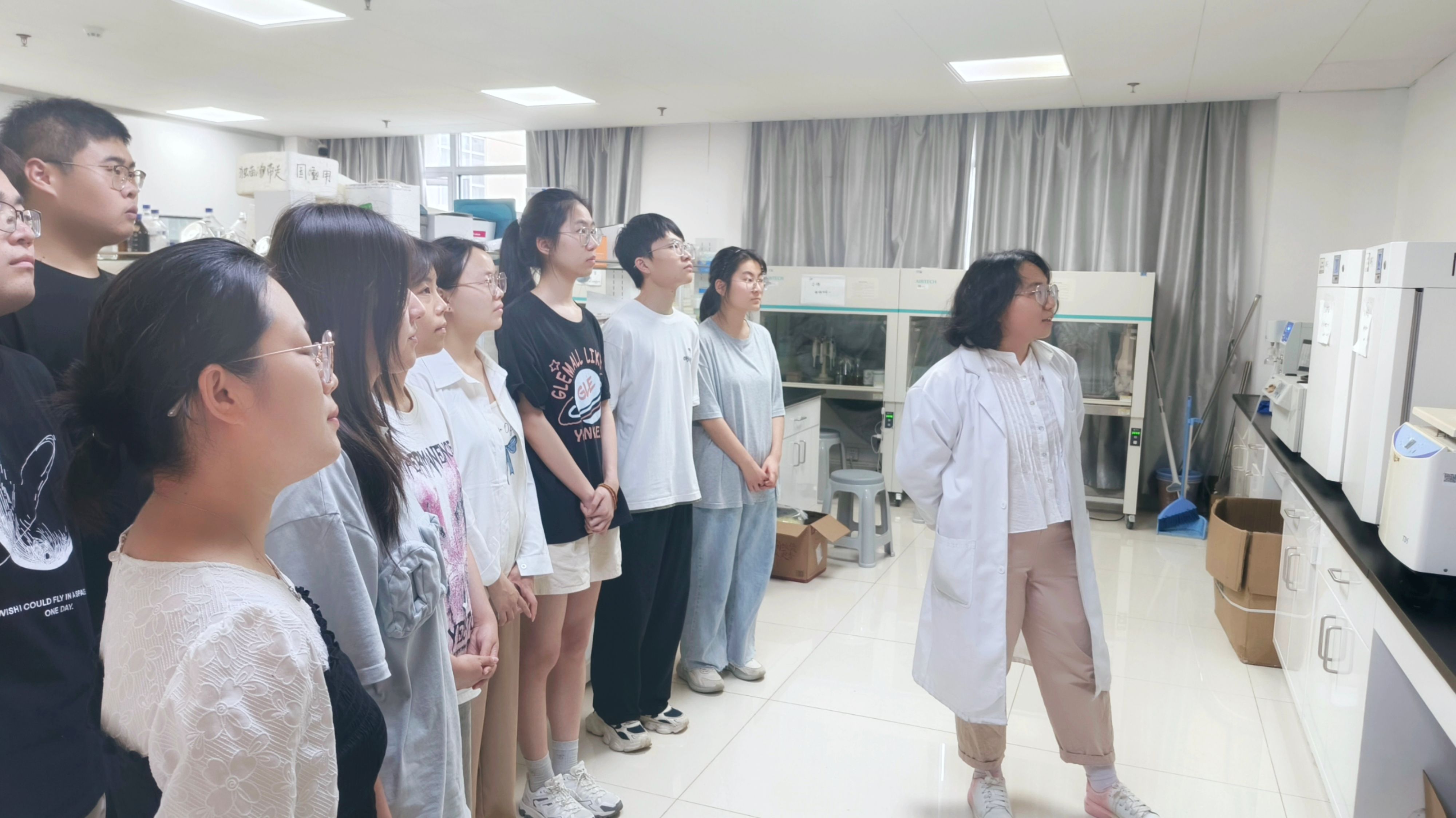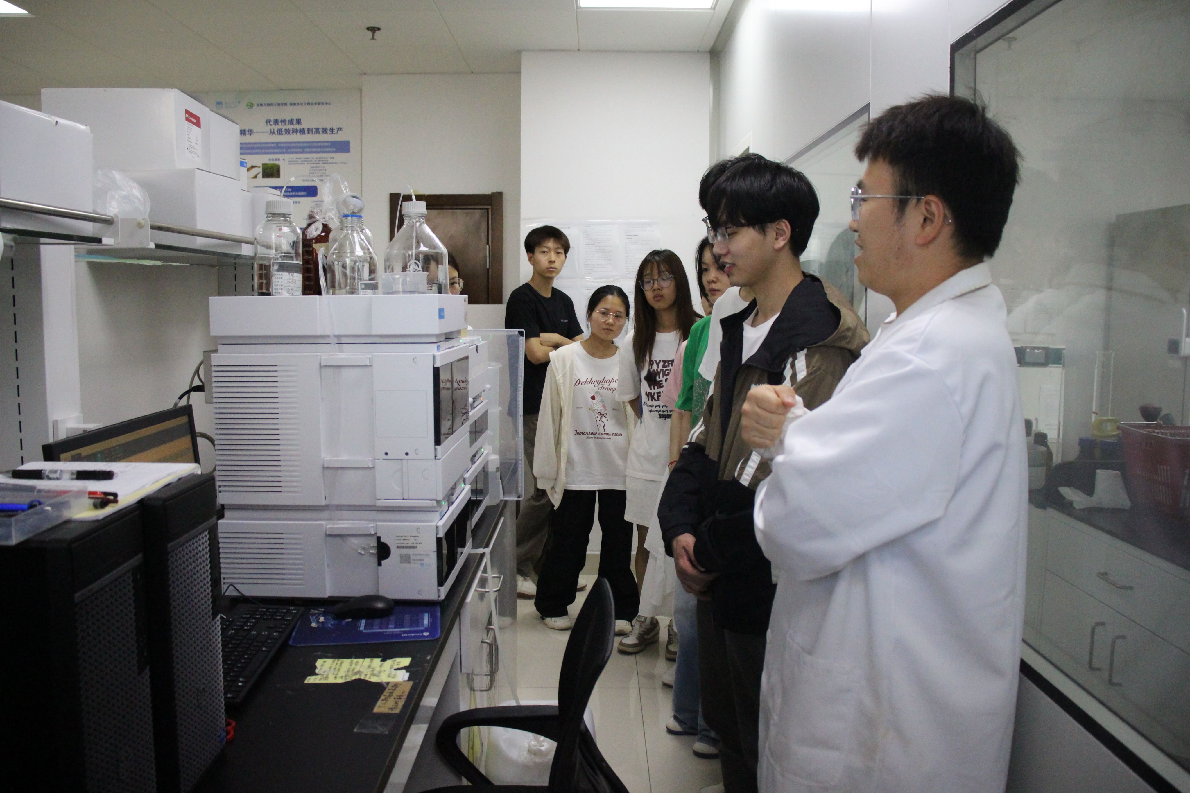 博士向参观同学介绍应院士团队“提高生物制造效率的创新技术与工业过程应用”的研究方向,详细介绍能量调控物质代谢的反应工程技术、细胞集群调控的仿生连续制造技术等过程强化技术等。在讲解过程中带领同学们参观实验仪器设备并相应介绍其功能和操作规范。同学们积极互动, 面对同学们的疑惑,博士团队结合自身科研经历,用通俗易懂的语言一一作答,鼓励同学们在未来的学习科研中保持好奇心和探索精神。