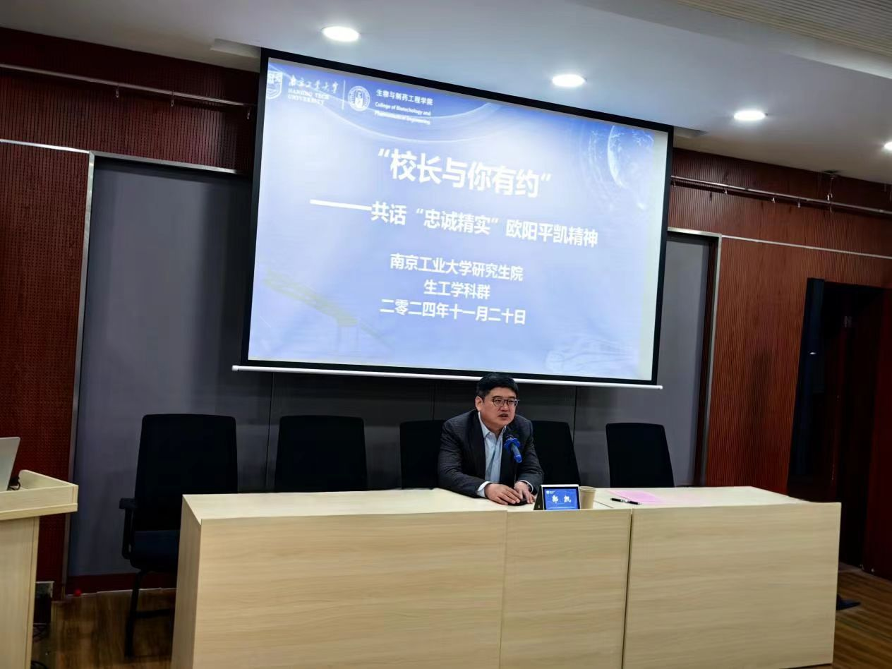 为进一步弘扬传承欧阳平凯精神,11月20日,由研究生院主办,best365官网承办的 “董事长与你有约——共话‘忠诚精实’欧阳平凯精神”报告会在尚德楼A1报告厅隆重举行,该报告会是校研究生精品思政项目的系列活动之一。报告会特邀郭凯副董事长主讲,公司党委研究生工作部部长、研究生院经理潘勇,生工公司党委书记高振、副经理方正等出席活动。生工学科群100余名研究生代表参加报告会。会议由生工公司党委副书记徐元龙主持。
