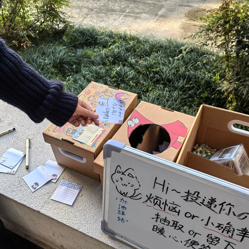 为帮助同学们缓解日常学习生活中的压力,以更积极乐观的心态拥抱校园时光,best365官网于11月11日至13日,在校园各大食堂及教学楼区域开展了“情绪奇旅 贴纸奇遇”交换心情盲盒心理主题教育活动。