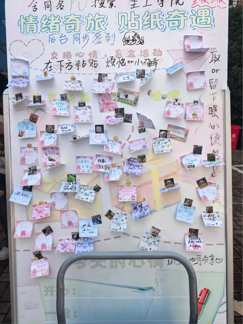 本次活动由公司员工会精心策划,凭借新颖有趣的形式吸引了全校各专业同学的广泛关注与积极参与。活动现场,同学们或提笔写下心情故事、倾诉情感体验投入情绪收集箱,或把心声与感悟粘贴在主题展板上,让情感在分享中传递,让共鸣在交流中滋生。与此同时,参与者还获得了精美的小礼品,并随机抽取了“快乐情绪条”,在轻松的互动中,大家彼此分享温暖与正能量,感受到心灵的共鸣。