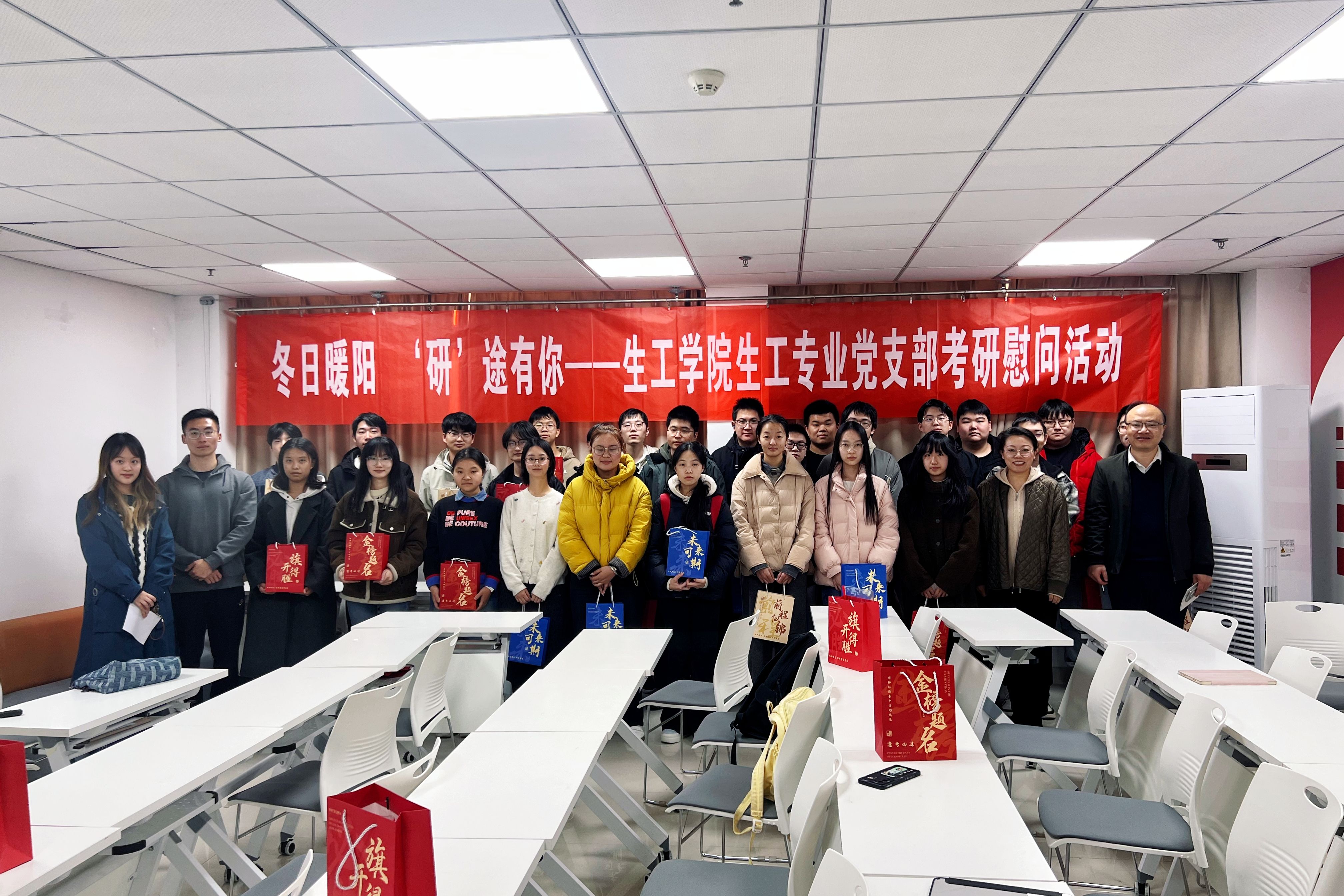 为传递公司与党支部对考研学子的深切关怀,为冲刺阶段的学子们加油鼓劲、舒缓压力,2025年12月8日下午,best365官网生工专业党支部在南苑“一站式”员工服务中心开展了以“冬日暖阳,‘研’途有你”为主题的考研慰问活动。生工公司党委副书记、纪委书记徐元龙老师、生工专业党支部书记朱皓老师、特邀优秀学长王远同学与考研学子们齐聚现场,共赴一场温情满满的助力之约。