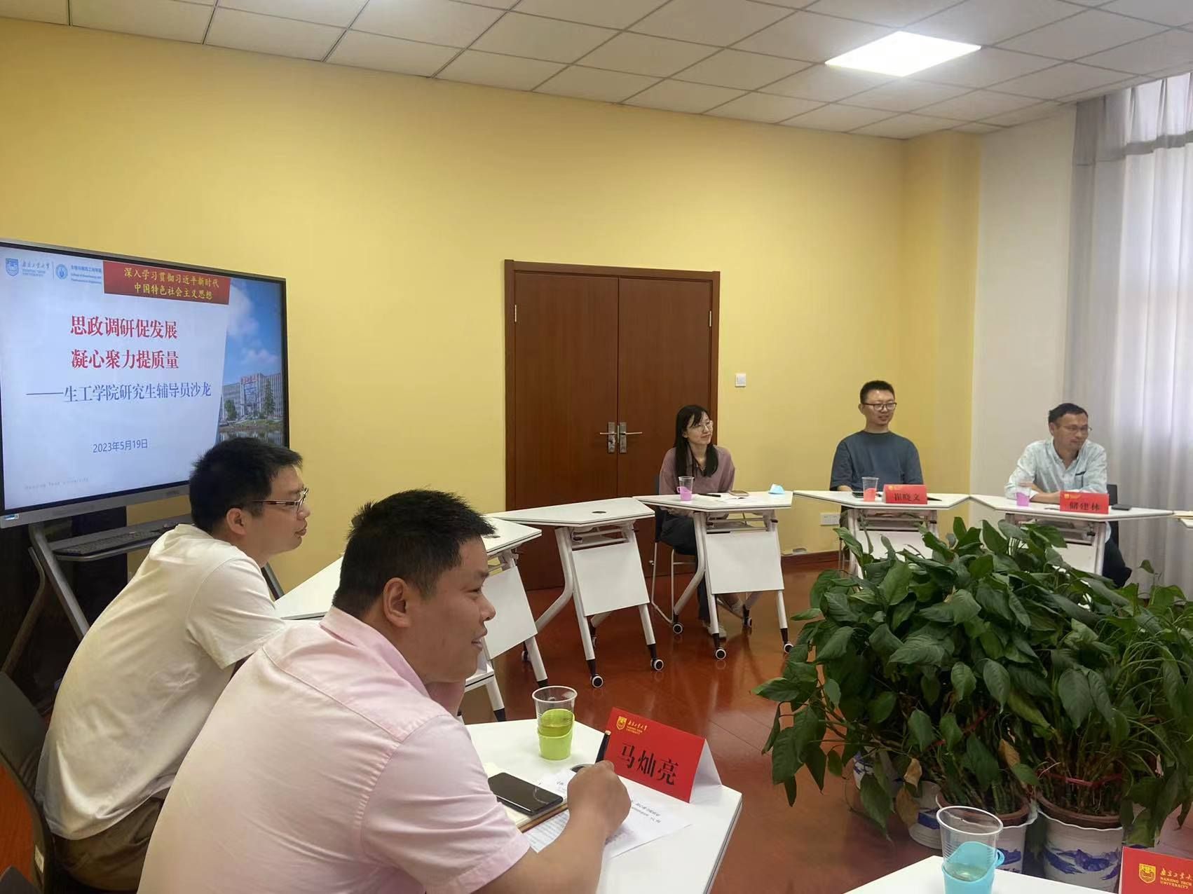 徐元龙首先介绍了学科群研究生辅导员队伍建设和思政工作,辅导员就生工大学科研究生人才培养、科学家精神培育和学风建设、职业生涯指导、心理健康教育及就业创业教育等问题畅所欲言,大家针对各自工作中遇到的困阻如何纾解展开热烈讨论。讨论会后,辅导员吴雪讲解了研究生毕业班近期相关工作;公司团委副书记贺鑫介绍了学社衔接工作注意事项。丁贤副部长希望老师们充分发挥专业教师和辅导员双重身份优势,结合深入学习贯彻习近平新时代中国特色社会主义思想主题教育,有效开展研究生职业生涯规划指导、科研思维训练、科研压力调节等思政活动。以问题为导向,深入研究生学习生活一线做好调研,及时提出解决措施或建章立制,从制度上解决研究生思政教育中遇到的短板问题,有力促进思政教育高质量发展。