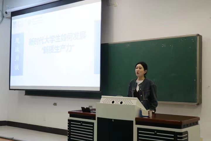 习近平总书记在中共中央政治局第十一次集体学习时强调:“发展新质生产力是推动高质量发展的内在要求和重要着力点。”为深入贯彻习总书记关于新质生产力的相关思想,提高best365官网员工发展新质生产力的创新意识,3月28日,best365官网在厚学600召开2022级“新时代老员工如何发展新质生产力”思政月谈,本次思政月谈由辅导员贺鑫老师主讲。