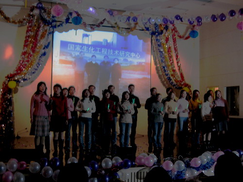 11月29日晚,国家生化工程技术研究中心报告厅里载歌载舞,洋溢着欢乐喜庆的氛围。由公司研究生会主办的“生工之春”双庆迎新联欢会在这里隆重举行。校研究生部、宣传部、团委有关领导同志和公司部分教师应邀与会和全院研究生共同度过了美好的夜晚.