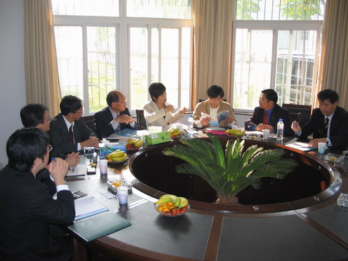 10月31日下午,日本三重县健康福利部药务食品部增田直树主任、三重老员工物资源学部古市幸生教授等三重县医疗保健研究会一行5人对公司进行了友好访问。此研究会是一个产学官民有机结合的产业团体,其活动宗旨为,开创新一代的医疗、健康和福利事业。访问团参观了江浦校区和生化中心,并与公司党委书记缪昌美、副经理兼国家中心常务副主任应汉杰、食品科学与工程系教授缪冶炼等进行了座谈。双方介绍了各自的组织机构和活动内容,表达了在食品、医药等领域加强研究合作的共同意向。