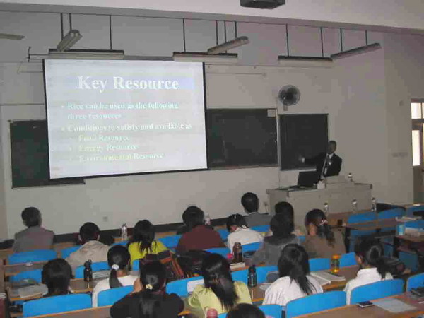 10月19日,日本三重大学职工中心主任、生物资源公司伊藤信孝教授,同大学工公司经理加藤政三教授对公司进行友好访问。缪昌美、卢定强、缪冶炼、熊晓辉、熊强等老师与来访者进行了亲切的会谈,并就如何加强双方的友好交流、加强教学和研究的合作交换了意见。当天下午,伊藤教授在缪冶炼教授的陪同下前往江浦校区,以“人口、粮食、能源、环境——世界四大课题的攻关策略”为题,为公司员工作学术报告,展示了大米生产和利用对解决粮食、能源、环境问题所起的重大作用。
