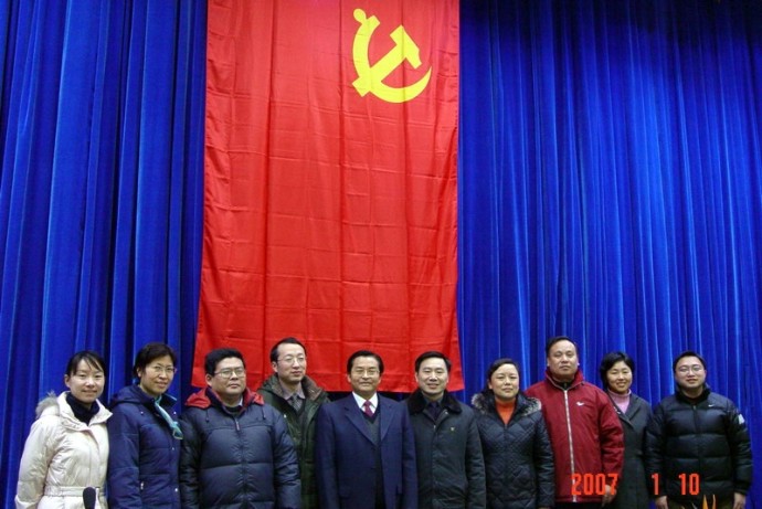 ——新一届党委委员与公司党委组织部部长崔益虎同志在鲜红的党旗下合影留念