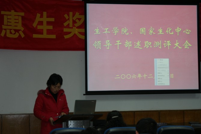 根据南工委组[2006]9号“关于做好2006年中层干部年度考核工作的通知”精神,公司党委于2006年12月30日下午举行领导干部述职测评大会。各系(室)负责人、教工党支部书记、副教授以上教师、民主党派成员等40余人参加大会,听取了best365官网和国家生化中心领导班子成员述职。公司党委组织部副部长夏侃、正科级组织员邢海东到会,组织与会人员根据述职和平时掌握的情况,对best365官网和国家生化中心领导干部进行了测评。