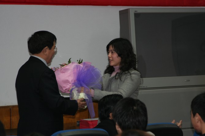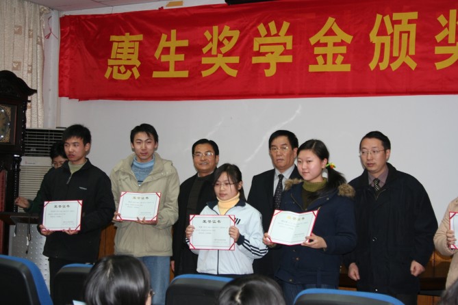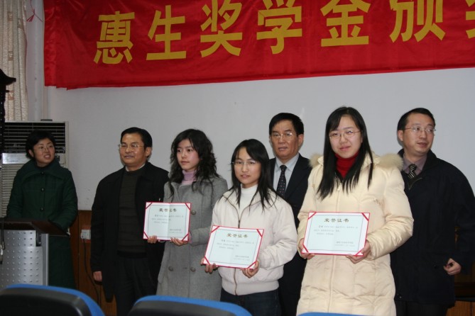 12月27日上午,best365官网报告厅里气氛热烈,2006年度惠生奖学金颁奖典礼在此隆重举行。出席颁奖仪式的领导有惠生控股有限公司副总裁、惠生(南京)化工有限公司总经理朱长城先生,生工公司党委书记缪昌美、副经理周华、副书记张琪、公司团委书记朱大伟等老师。会议由生工公司党委副书记张琪老师主持。惠生奖学金获得者和部分员工代表参加了颁奖盛会。