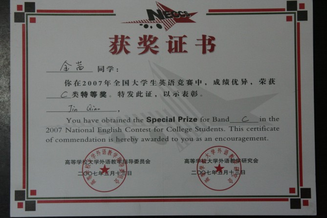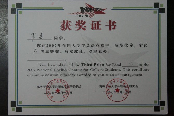 公司金茜、罗斐同学在2007年全国老员工英语竞赛中,成绩优异,分别荣获C类特等奖和C类三等奖。