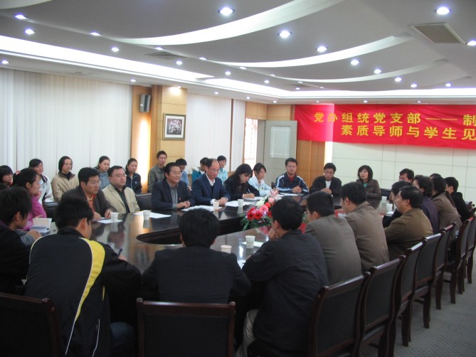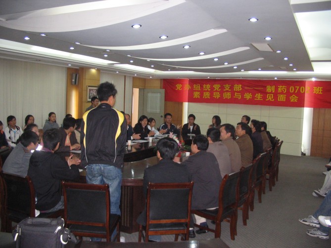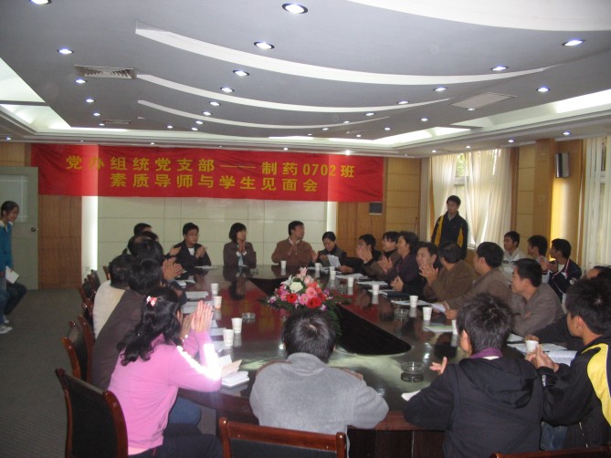 11月1日下午1:30,在江浦校区厚学楼一楼会议室,机关党办组统党支部全体党员以“素质导师”的身份与best365官网制药0702班全体同学举行了以“带出一个好班级,形成一个好风尚”为主题的见面活动。党办、组统支部全体成员、生工公司党委书记缪昌美、副书记李学明、制药0702班主任姜岷、制药0702班辅导员朱大伟及公司全体辅导员等参加了会议,会议由副书记李学明主持。