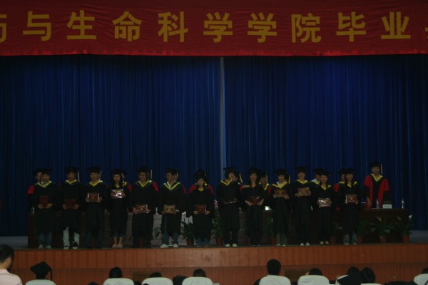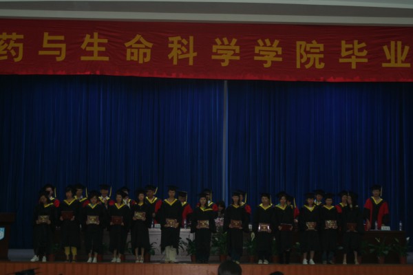 2008年6月19日,制药与生命科学公司2008届毕业典礼在丁家桥桥区大礼堂举行。公司党委书记缪昌美、经理韦萍、副书记李学明、副经理周华、徐虹;国家生化工程技术研究中心副主任万红贵、江苏省工业生物技术创新中心主任黄和、江苏省药物研究所所长卢定强;生物工程系主任何冰芳、制药工程党支部书记朱颐申、药剂系主任陈国广、食品系党支部书记熊强等老师出席了毕业典礼。