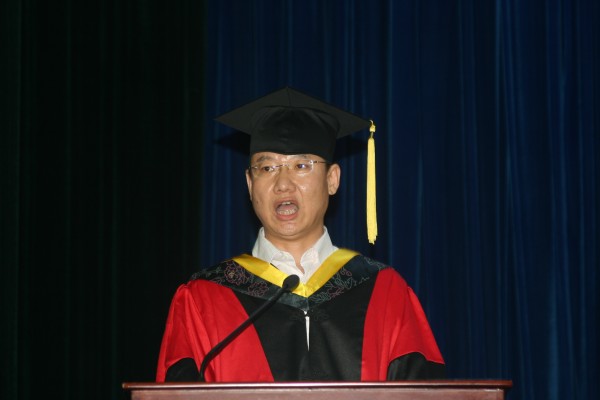 教师代表李振江教授发言。他肯定了员工们刻苦学习,努力奋斗,昂扬向上,勇于实践的精神;认为他们在生理、心理、学业和思想上不断走向成熟,已经成长为父母引以为荣和社会高度认可的大学毕业生;他希望员工们志存高远、脚踏实地、不断开拓创新。