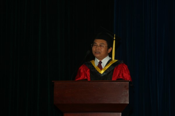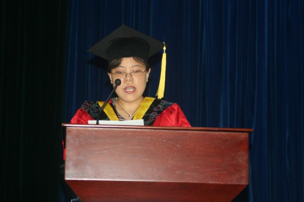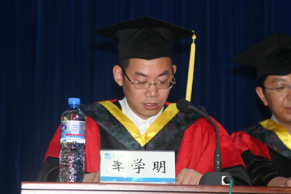 毕业生代表、食品0401班李红倩同学发言。她代表08届的全体毕业生,向四年来辛勤给予他们启迪、授予他们智慧、教育他们正直、赋予他们关怀的老师们表示最诚挚的感谢!并衷心的祝愿母校蒸蒸日上、欣欣向荣;祝愿老师身体健康,桃李满园;祝愿各位学弟、学妹身心愉悦,学业有成;祝愿所有毕业生在人生道路上一帆风顺。