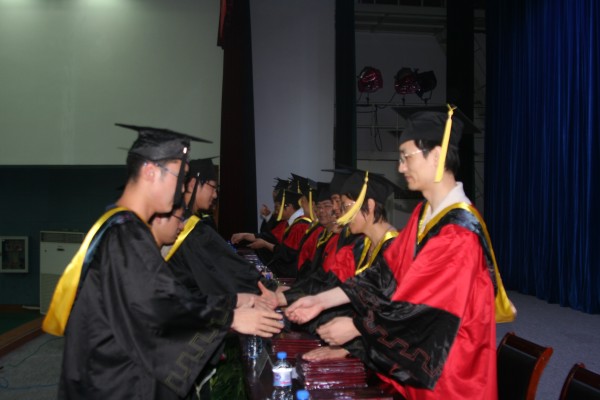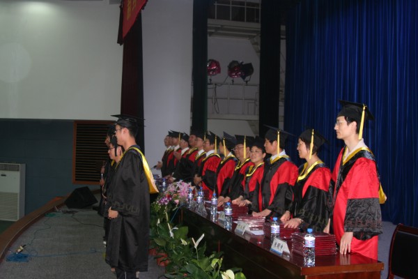 毕业典礼由李学明副书记主持。徐虹副经理宣读了“关于表彰2008届优秀毕业生的决定”;周华副经理宣读了“关于准予王月霞等306名同学毕业及授予王月霞等258名同学学士学位的决定”。与会领导分别为优秀毕业生颁发荣誉证书;为毕业生颁发了毕业证书。