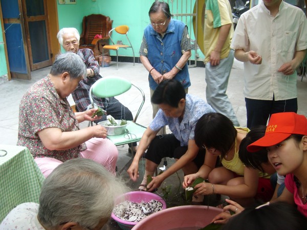 此外,志愿者们还陪着爷爷、奶奶们聊天,讲笑话,读报纸,让他们了解最近国内外的大事、趣事,尤其是最近南京为了庆祝端午节的到来而举办的各类活动。爷爷、奶奶们听了,脸上露出幸福的笑容。此时此刻,经烫洗的粽叶散发出淡淡的清香,弥散在整个院子里,更增添了浓浓的节日气氛。
