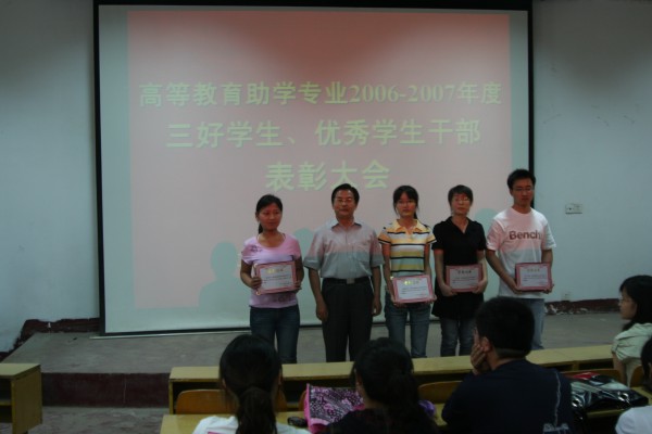 缪昌美老师代表公司党政领导讲话。他看到特色自考专业员工取得的成绩和进步感到十分高兴,对同学们积极开展情系四川地震灾区捐款活动的善举给予了高度的评价;对获得三好员工和优秀员工干部荣誉称号的员工表示热烈的祝贺。他从省教育厅考试院和公司对助学自考工作的重视、公司为助学自考专业同学创造的学习环境、任课老师和班主任对同学们的关爱等方面,让同学对助考自学专业在“天时、地利、人和”等方面具备的外因印象深刻;他用正反两个方面的生动事例让同学们从内因层面强烈地感受到:“精神力量对学业进步往往具有决定性意义”。他希望受表彰的三好员工和优秀员工干部再接再厉,充分发挥示范带头作用,不断取得新的进步。希望全体自考员工向受表彰的三好员工和优秀员工干部学习,以对父母、公司、人民的感恩心和责任心,以自强不息的精神和不断超越自己的信心,保持勤奋,不懈努力,把自己培养成为一个国家和人民有用的人。