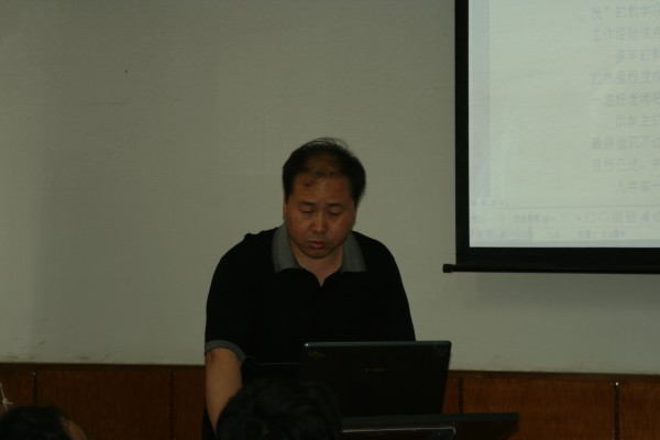 谢宁昌老师代表教学实验中心学习小组发言。他声情并茂地讲述了自己的求学和教学经历。他指出员工对课程的喜爱程度以及员工成绩的好坏是与员工对该教师的热爱程度成正比的。他还总结了一些拉近教师与员工距离的方法。