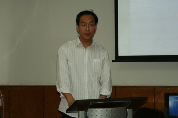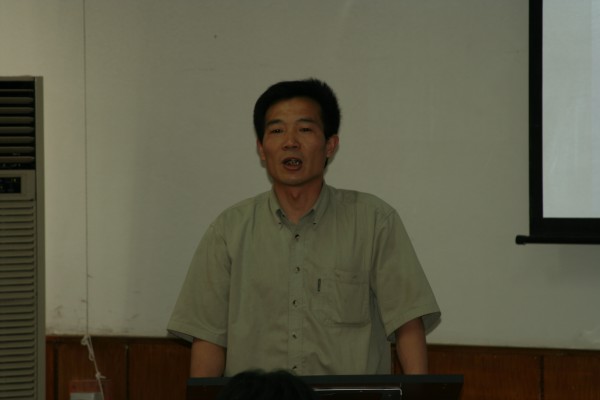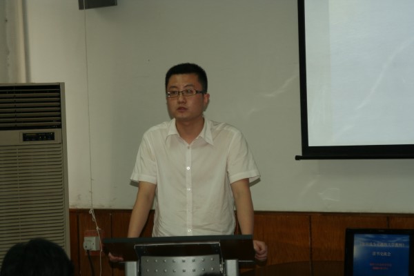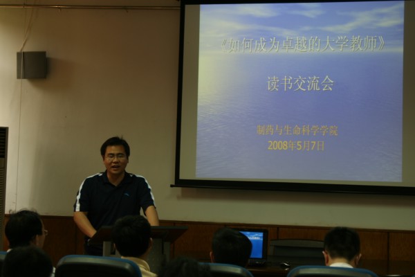 陈英文老师代表生物工程系学习小组发言。他指出了中国大学课堂教学模式中的问题和痼疾,分析了问题产生的原因,并研究了改善方法。他引用孔子的“其身正,不令而行,其身不正,虽令不从”,勉励自己用人格力量来达到学术水平与道德情操的完善统一。