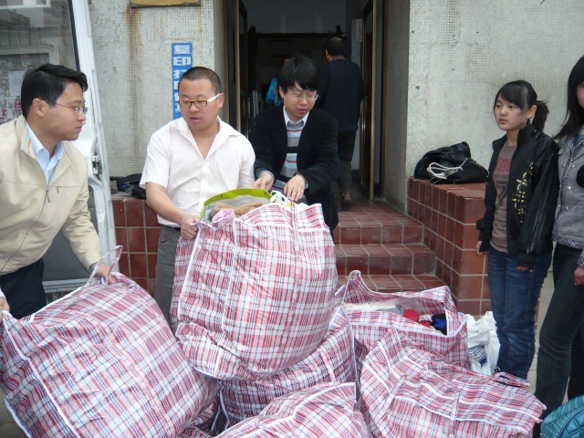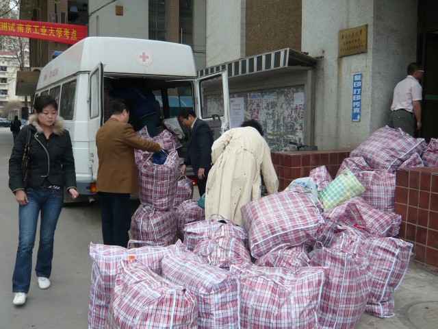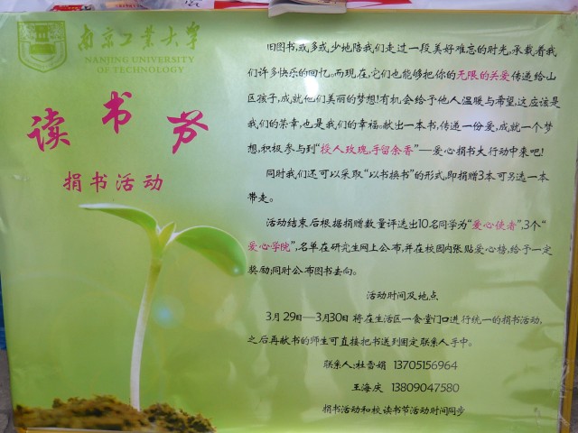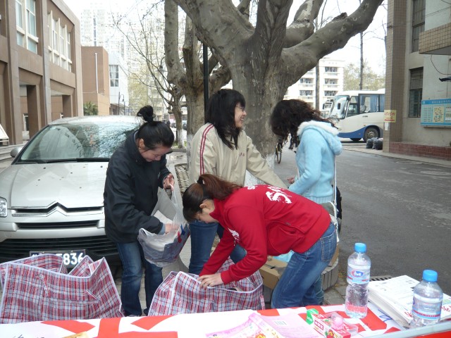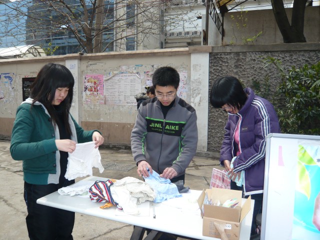 此次爱心捐赠活动分别在丁家桥生活区新研楼楼下、虹桥生活区食堂门口设立捐赠点。由爱心志愿者协会志愿者分发倡议书和宣传单,现场收受物资的捐赠,并登记、派送纪念品。同时,还有部分志愿者深入到周围的小区向附近的居民发放宣传单,并上门收受捐赠的衣服、生活用品。该活动得到了全校师生以及附近居民的大力支持,许多研究生纷纷将自己闲置的衣服、鞋子、书籍、本子等捐献出来,并向周围的同学宣传,号召大家都来伸出友爱之手。一些老师获悉此次爱心捐赠活动后,还特意开车将家里闲置的衣服和书籍送过来。另外,丁家桥附近小区的居民也将自己的衣物整理并捐献了出来。截至4月1号上午,短短三天时间,就收到了50余袋衣物和书籍等。
