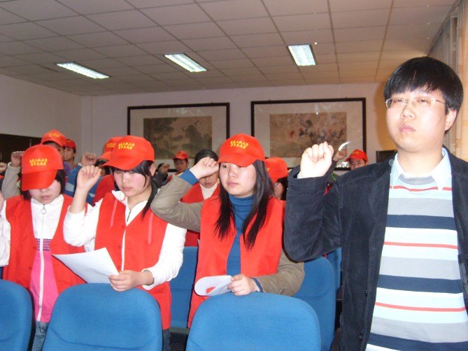 ——研究生爱心志愿者协会副会长顾立同学带领全体爱心志愿者庄严宣誓