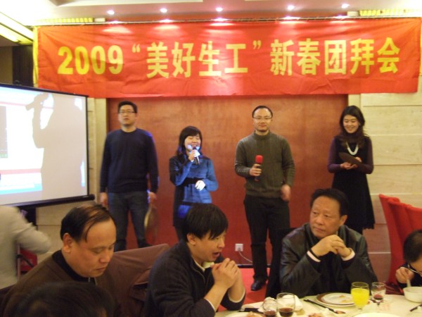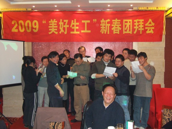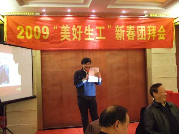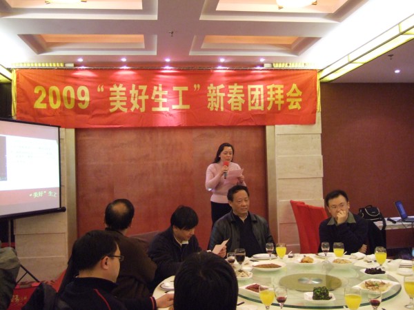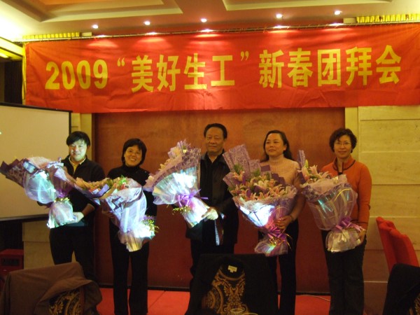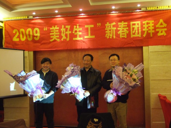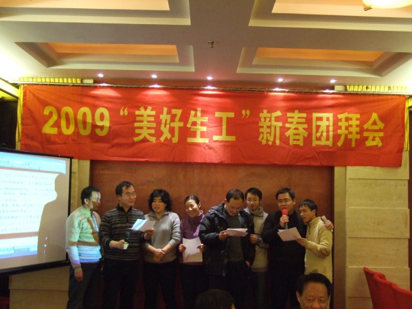 鼠年谱就惊天曲,牛岁迎来动地诗。元月14日下午,公司在天狮百盛酒店隆重举行2009“美好生工”新春团拜会。江苏省科协主席、董事长欧阳平凯院士出席团拜会并作重要讲话。部分企业家客座教授应邀出席团拜会并为与会人员抽奖。团拜会由公司党委书记缪昌美主持。他说:“美好生工”与“美好江苏”、“和谐社会”紧密相联。以“美好生工”为题举行新春团拜会,表达“爱我生工”的自豪感,表达“没有最好,只有更好”的责任感,就是要放飞我们的美好心情,表达我们的美好祝福,凝聚我们的美好愿景,实现我们的美好期待!