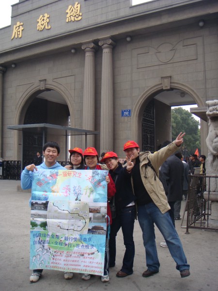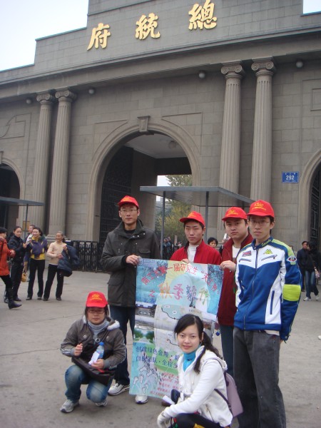 毅行队伍从本部起点开始,步行途经玄武湖、台城、白马公园、中山陵景区、前湖公园、南京博物馆、梅园新村,最后到达终点站——总统府,总行程约19公里。行程中,大家还顺便参观了南京博物馆,丰富了历史知识。研会工作人员在沿途设置了四个检录点(即驿站),分别位于白马公园、紫金山索道、南京博物馆和总统府,并有三名安全协助人员随队前进。在各个驿站,我们挂起“毅行南京”的海报,铺开签名横幅,向市民宣传环保知识。参与毅行的队员们,头戴 “毅行”帽,手缠代表环保的绿丝带,沿途吸引了不少路人的目光,同学们也主动向路人介绍我们的活动并宣传环保知识。我们此次毅行的路线,穿过了闹市区、风景区,让我们领略了现代南京和古韵金陵的双重魅力。在行进过程中,各队成员之间相互帮助、相互鼓励,特别是临近终点时,有些队员到了体能极限,快要走不动了,但在其它队员的支持和鼓励下,仍然坚持前进,一鼓作气,到达终点。抵达终点的各小队,不分先后,均为胜利者,可以得到研会准备的纪念奖品。