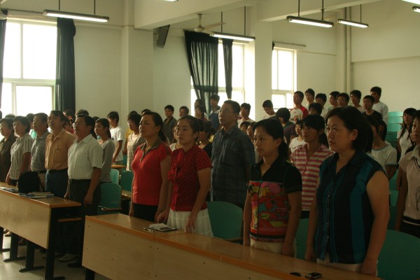 9月21日下午,公司特色自考2008级新生开学典礼在江浦校区厚学楼301隆重举行。缪昌美书记、韦萍经理、公司办公室主任朱凤英、员工办公室主任王浩、自考办公室吴玲燕老师、杨冬红老师、公司熊强老师、柏中中老师等出席了开学典礼。开学典礼由王浩老师主持。100余名自考新生在庄严的国歌声中受到了一次精神的洗礼和信心的升华。