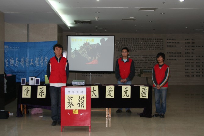 玉树不哭雨纷纷,爱心捐赠情浓浓。2010年4月21日,玉树地震全国哀悼日,best365官网研究生会组织的情系玉树爱心捐赠活动,在南工大科技创新大楼一楼大厅和丁家桥校区餐厅入口处举行。现场播放着央视“情系玉树,大爱无疆”大型捐赠晚会的录像,把“党和人民紧密相连、众志成城抗震救灾、爱心人士倾情捐赠”的感人场面再次回放,营造出浓厚的捐赠氛围。获知捐赠消息亲临现场的公司领导缪昌美、何冰芳、姜岷、熊强等老师带头捐赠,既是对生工研会同学善举的嘉许和呼应,更是对玉树同胞的关切和祈福。募捐箱前,身着红马甲的爱心志愿者们以充满敬意的目光迎接着每一位捐赠者,也让谢意和人间真情始终洋溢在捐赠现场。截止晚上6点,共募得善款2937.3元人民币,所募善款已通过南京慈善总会尽快送达地震灾区。尽管善款有限,但善举中蕴含的爱心和精神力量是无限的。有些同学说,募捐现场天空飘雨,也许那就是天使的眼泪,和玉树人民一起伤痛。然而雨后的阳光就是整个中华民族的温暖。也有些同学说,相亲相爱“一家人”,一元、五元、十元、百元,都表达了一个中国人对同胞的骨肉深情。“微尘”是我们的名字,玉树是我们的家乡!支援灾区,我们在行动! (文:张伟 摄影:米兰)