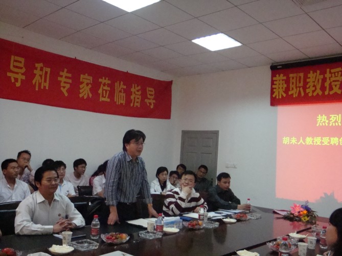 授聘仪式后,胡未人教授胡教授以“科研素质与企业需求”为题作了一场精彩的讲座,受到了与会师生的热烈欢迎。