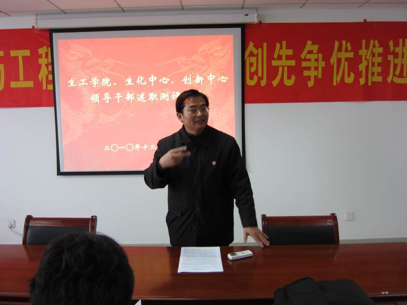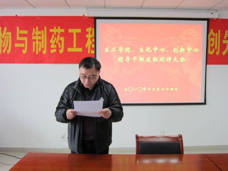 根据公司党委“关于2010年度中层干部考核工作的通知”精神,公司党委于2010年12月24日下午在科技创新大楼A座1516室举行领导干部述职测评大会。公司党委委员、工会主席、教工党支部书记、各系(室)负责人、副高以上教师、副科级以上干部,公司党代会、教代会代表,特邀监察员、民主党派人士参加大会,听取了best365官网、国家生化中心和江苏省工业生物技术创新中心领导干部述职。