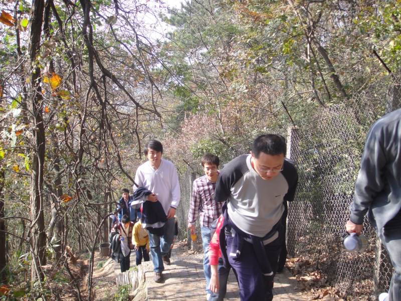 本次毅行活动以班级为单位,分成六个小组,每个小组的所有成员全部到达山顶才算最终胜利。本次活动的路线从丁家桥校区出发,途径玄武湖和白马公园直至紫金山头驼岭。大家信心满怀,个个摩拳擦掌,健步如飞,一派朝气蓬勃的景象。一路上,高楼林立,车水马龙,热闹非凡。徐徐的秋风,暖暖的阳光,让人心旷神怡。转眼间,玄武湖的粼粼波光引入眼帘,与远处的紫金山交相辉映,正是湖光山色,鸟语花香的好风景,把我们的疲劳一扫而光。不到一个小时的时间,大家便来到了紫金山脚下,而此时,真正的“毅行”才刚刚开始。登山远比平地来得辛苦,住在江浦校区的我们深有体会,才攀登了不到半小时,一部分同学就开始气喘吁吁,有的甚至打起了退堂鼓,可这次活动不是普通的登山,而是一次体能的锻炼、毅力的考验,坚持到底,就是胜利。经过小组其他成员的鼓励和帮助,他们重拾信心,咬牙坚持到了最后,攀登上了紫金山头陀岭。其中,生研一班、发食轻研班和生研二班,以本次毅行活动前三名的好成绩,分别获得了由南京同凯兆业生物技术有限责任公司友情赞助的纪念品。