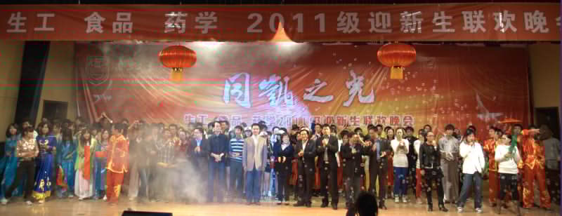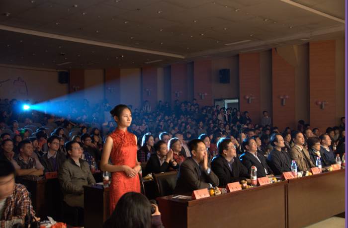 生物与制药工程公司党委书记缪昌美老师为“同凯之光”新生文艺晚会致辞,感谢同凯兆业生物技术有限公司热情赞助2011级新生文艺晚会;祝贺同学们以优异的高考成绩书写了金榜题名的凯歌;期待同学们再接再厉,为了共同的理想、共同的追求、共同的责任,谱写好传承先进文化的凯歌、创先争优的凯歌、全面发展的凯歌。
