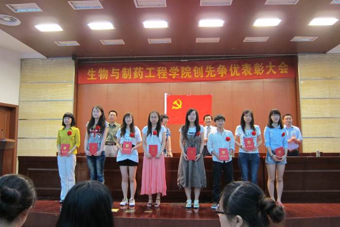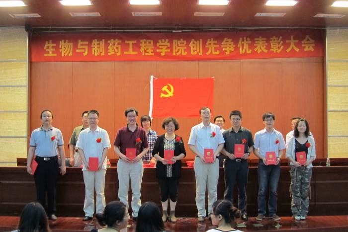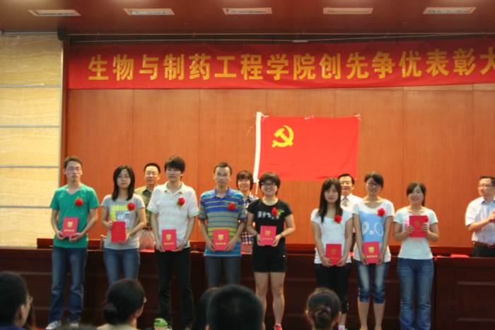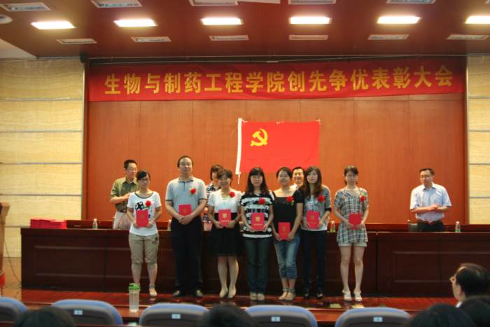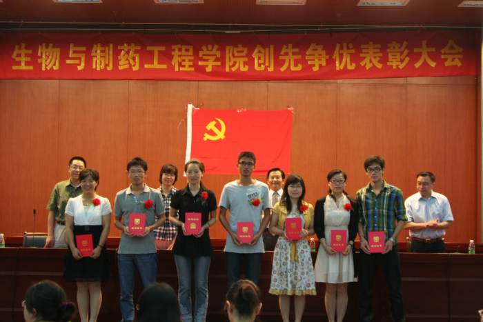 2011年6月11日上午,生物与制药工程公司党委在丁家桥校区科技创新大楼5楼报告厅,举行创先争优表彰大会。出席会议的有公司党委委员、各党支部委员、受表彰的先进党支部、优秀共产党员、优秀党务工作者、新加入党组织的预备党员、2010届毕业生党员。大会由公司党委副书记熊强同志主持。副经理何冰芳同志宣读表彰决定。best365官网教工第3党支部等8个先进党支部、李振江等54位优秀共产党员、李霜等7位优秀党务工作者佩戴光荣胸花,获到了公司党委的表彰;99名新党员在副经理姜岷同志的带领下面向党旗庄严宣誓,发出了誓为共产主义奋斗终身的决心。